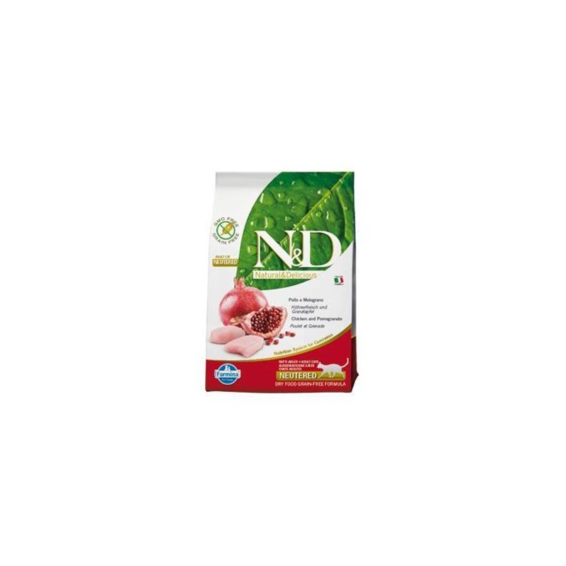 Kompletné krmivo pre kastrované mačky bez obilovín, kura a granátové jablko,