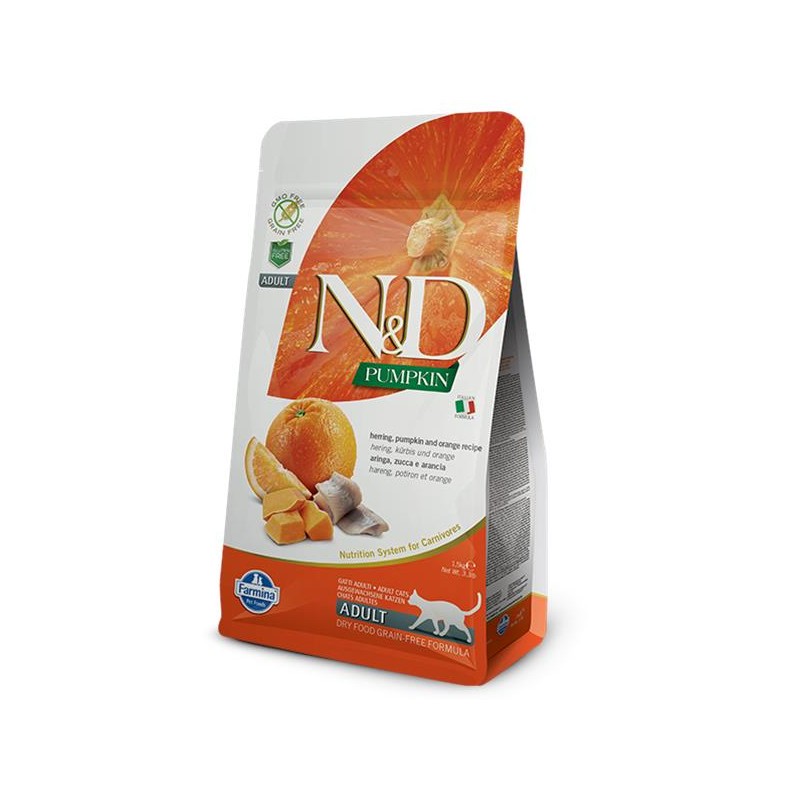 Slede, tekvica a pomaranče. Kompletné krmivo pre dospelé mačky.