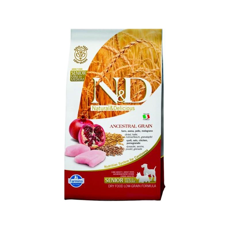 Čerstvé kuracie mäso bez kostí (20%), sušené kuracie mäso (18%),špalda (10%), ovos (10%), kurací tuk, čerstvé slede, sušené slede, sušené vajcia , sušená repná dužina, rybí tuk, rastlinná vláknina z hrachu, sušená lucerna alfalfa, sušená mrkva, inulín, frukto-oligosacharidy, mannán-oligosacharidy, sušené mleté granátové jablká (0,5%), sušené jablká, sušený mletý špenát, skorocel indický (0,3%), sušené mleté čierne ríbezle, sušené pomaranče, sušené mleté čučoriedky, chlorid sodný, sušené pivovarské kvasnice, koreň kurkumy (0,2%), glukozamín, chondroitín sulfát, výťažok z nechtíka lekárskeho (zdroj luteínu).