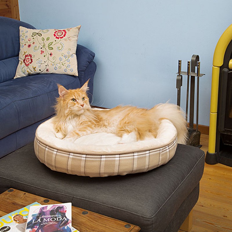 Táto malá posteľ pre mačky a psy má klasický okrúhly tvar s polstrovanými okrjami. Je vyrobený z vysoko kvalitnej tkaniny s ekologickou podšívkou z kožušiny, pohodlný a jemný na dotyk.